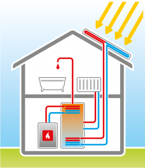 Die Wärmepumpe springt nur dann ein, wenn zusätzliche Energie nötig ist – und arbeitet dank der vorgewärmten Solarenergie besonders effizient.